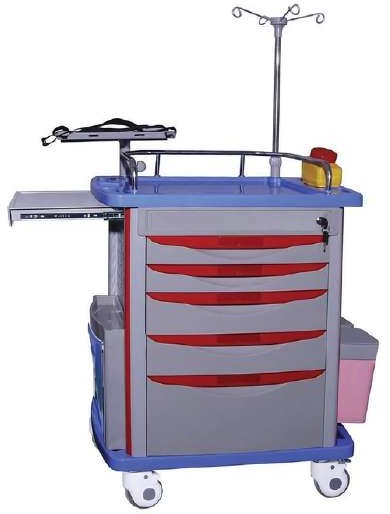 1 Defibrillator Shelf & 1 Extra Sliding Side Shelf. 1 CPR Board, Oxygen Cylinder Holder.